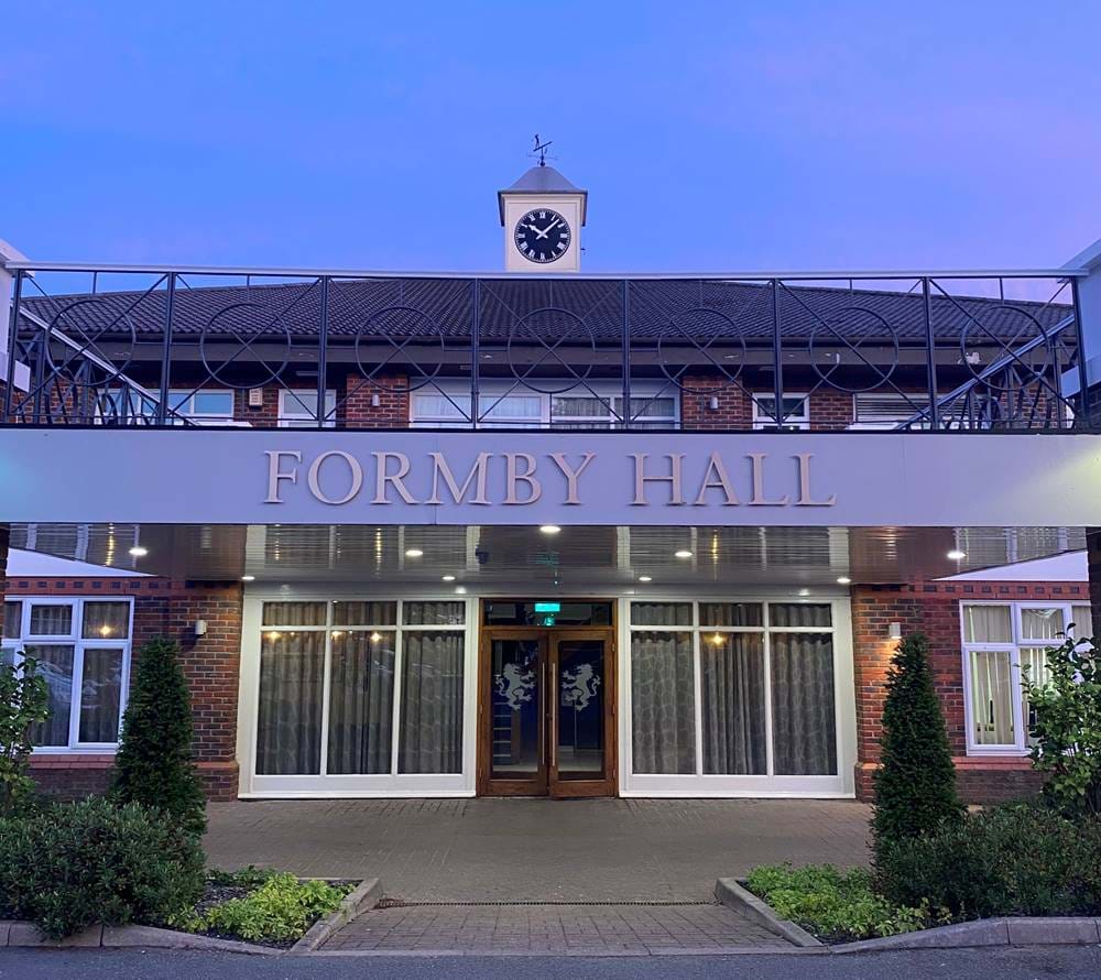 Formby Hall is a 76 bedroom resort with hotel, golf courses, restaurant, bar and spa facilities.